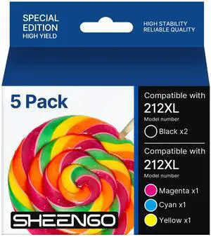 SHUOLEI 212XL Remanufactured Ink Cartridge Replacement 212 XL T212 Work WF-2850 WF-2830 Expression Home XP-4100 XP-4105 Printer (2Black, Cyan, Yellow, Magenta, 5-Pack)