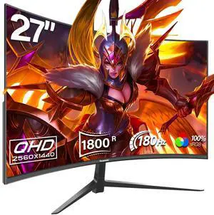 Gawfolk 27 Inch Gaming Curved Monitor, 180Hz QHD 2560x1440p PC Monitor with AMD FreeSync, Flicker-Free, HDMI 2.0, DP 1.4, Ultra-Thin Frameless 2K Computer Screen