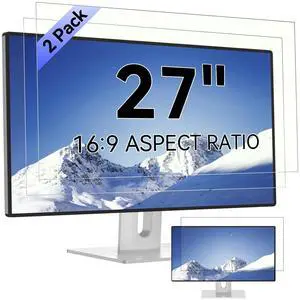 [2-Pack] 27 Inch Computer Blue Light Blocking Screen Protector for 16:9 Widescreen Monitor, Anti Glare Anti-UV Eye Protection Desktop PC LED Monitor Filter, Removable Anti-Scratch Screen Film 27in