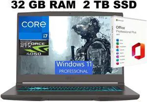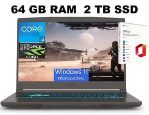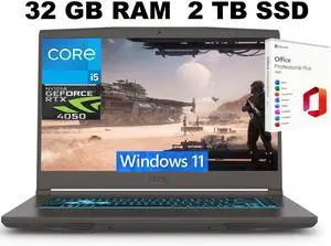 MSI Thin 15 Gaming Laptop, 15.6" Full HD (1920x1080) 144Hz, Intel Core i5-13420H 8 cores Processor, NVIDIA GeForce RTX 3050 4 GB, 32GB DDR5 2TB PCIe SSD, Backlit Keyboard, Windows 11 Pro
