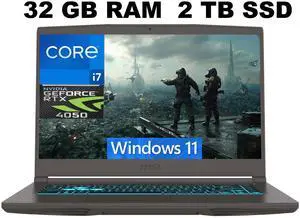 MSI Thin 15 Gaming Laptop, 15.6" FHD (1920x1080) 144Hz, Intel Core i7-13620H 10 cores Processor, NVIDIA GeForce RTX 4050 GDDR6 6GB, 32GB DDR5 2TB PCIe SSD, Bluetooth 5.3, Windows 11