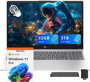HP 15.6" FHD Touchscreen Business Laptop, Intel Core i5-1334U, 32GB RAM, 3TB Storage(2TB SSD+1TB Docking Station Set), Intel Graphics, Numeric Keypad, Copilot, Win 11 Pro, Silver