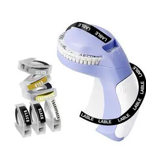Embossing Label Maker Machine with 6 Tapes, Old School Embosser Labeler with 6 Rolls 3D Embossing Label Waterproof for Office and DIY- Purple