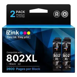 E-Z Ink Remanufactured Epson 802 Ink Cartridges Replacement for Epson 802XL 802 XL T802XL T802 XL Ink Cartridges to use with Workforce Pro WF-4740 WF-4730 WF-4720 WF-4734 EC-4020 EC-4030 (2 Black)