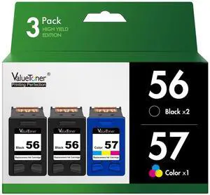 Valuetoner Remanufactured Ink Cartridge Replacement for HP 56 & 57 C9321BN C6656AN C6657AN for Deskjet 5850 5650 5150, Photosmart 7150 7260 7350 7960, PSC 2510 Printer (2 Black, 1 Tri-Color, 3 Pack)