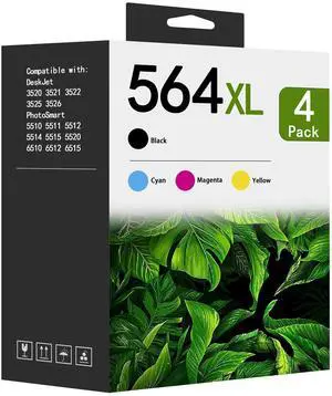 564XL High Yield Ink Cartridges Replacement for HP 564XL Ink Work for Photosmart 7520 7510 7525 5520 5510 6510 6520 DeskJet 3522 3521 Printer(4-Pack, 1B/1C/1M/1Y)