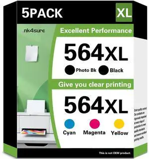 564XL High Yield Ink Cartridges (5-Pack,1Black/1Photo Black/1Cyan/1Magenta/1Yellow) Replacement for HP 564 XL Ink Work for HP DeskJet 3520 3522 Officejet 4620 Photosmart 5520 6510 7520 7525 Printer