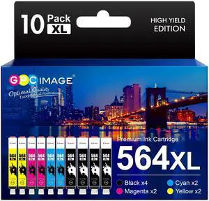 GPC Image Compatible Ink Cartridge Replacement for HP 564XL 564 XL ink use with DeskJet 3520 3522 Officejet 4620 Photosmart 5520 6510 6515 6520 7520 7525 D7560 Printer (Black Cyan Magenta Yellow, 10P)