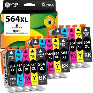 Smart Ink Compatible Ink Cartridge Replacement for HP 564 XL 564XL High Yield 15 Combo Pack (3 Black, 3PBK & 3 C/M/Y) for Photosmart 6525 6520 7520 5520 7510 5510 7525 DeskJet 3520 3522 OfficeJet 4620