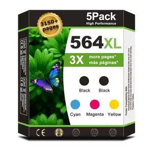 564XL Ink Cartridge Combo Pack Compatible for HP 564 XL HP564 HP564XL Printer 7520 5520 3520 6510 6520 4620 7510 5510 4622 6525 3521 5525 5515 5512 b210 Black Black Cyan Magenta Yellow (5-Pack)