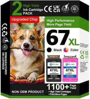 67XL Ink Cartridges Black/Color Combo Pack Compatible for HP 67XL Compatible for HP Ink 67 XL Works for HP DeskJet 4227e 2827e 2755e 2855e 2842e 2800 4155e 2755 2852e Envy 6055e 6000 6455e Printer