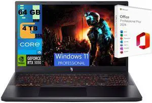 Acer Nitro V 15 Gaming Laptop, 15.6" Full HD Display, Intel Core i5-13420H 8 cores Processor, NVIDIA GeForce RTX 5050 8GB GDDR7 64GB DDR5 4 TB PCIe SSD, Wi-Fi 6, Windows 11 Pro,Office 2024 License