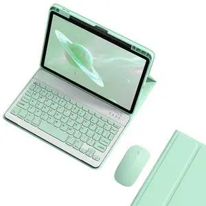 iPad 10th Generation Case with Keyboard Mouse 2022 iPad 10 Removable Bluetooth Wireless Keyboard Case Color Keys (Dark Green)