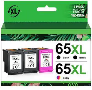 TECKKIN 65XL Ink Cartridges Black/Color Combo Pack (3 Pack) Replacement for Ink 65 65XL for DeskJet 3755 3772 3700 3752 3722 2600 2622 2652 Envy 5055 5000 5070 5014 5052 Printer (2 Black, 1 Color)