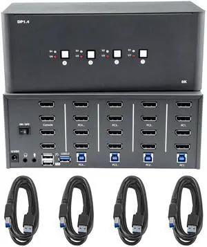 KVM Switch 4 Monitors 4 Computers, 8k Displayport Switch with USB 3.0, Jack, 4 Computers Share a Set of Keyboard, Mouse, Support Windows/Mac/Linux (Quad Monitor)