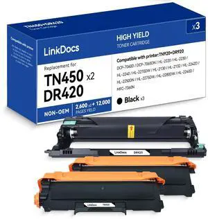 LinkDocs TN450 DR420 Toner Cartridge & Drum Unit Replacements for Brother TN-450 DR-420 to use with Brother FAX-2940 FAX-2840 MFC-7240 HL-2270DW Printer (2 Toner Cartridges 1 Drum Unit, 3 Pack)