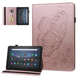 Case for Kindle Fire HD 8 & Fire HD 8 Plus (12th/10th Gen, 2024/2022/2020) 8" with Stand/Pencil Holder [Auto Sleep/Wake], UUcovers Embossed Magneic Smart Folio Cover, Brown Butterfly