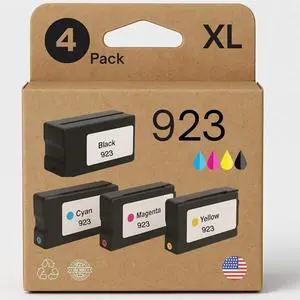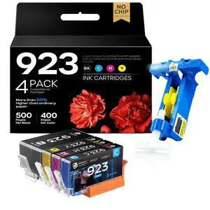 923 Ink Cartridges for HP Printers Compatible for HP 923 Ink Cartridges HP923 for HP Officejet Pro 8130e 8120e 8135e 8139e 8120e 8125e Printers (4 Pack 923 Ink Black Cyan Magenta Yellow Without Chip)