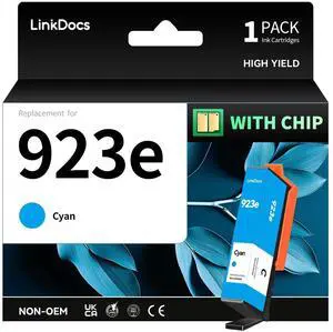LinkDocs 923e Cyan Ink Cartridges (with Chip) Remanufactured Replacement for HP 923xl 923 e Work with OfficeJet Pro 8120 8123 8130 8133 Printer (Cyan, 1-Pack)