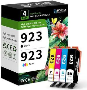 Compatible 923 Ink Cartridges (Without CHIP) Work with HP 923 923XL Ink Cartridges Combo Pack Replacement for HP OfficeJet Pro 8135e 8130e 8139e 8138e 8122e 8120 8124e 8125e 8130 8132e Printer(4 Pack)