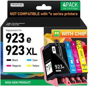 PRINPUSE 923xl Ink Cartridges 4 Pack with chip Remanufactured Replacements for HP 923xl Ink Cartridge Combo Pack 923e 923 xl for HP Printers OfficeJet 8120 8122 8124 8125 8130 8132 8134 8135 8138 8139