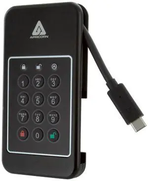 Apricorn 500GB Aegis NVX Ultra High Speed NVMe 10Gbps USB Type C Hardware-Encrypted Drive (ANVX-500GB)