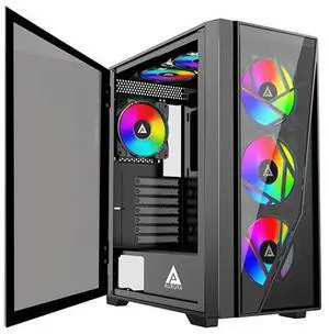 Apevia Aurora-BK Aurora Mid Tower Gaming PC Case w/ 6X 120mm PWM ARGB Fans, 366 RGB Light Modes, 1x Glass & Mesh Front Panel, 1x Door Swivel Style Magnetic Glass Side Panel, 2X USB3.0, Black