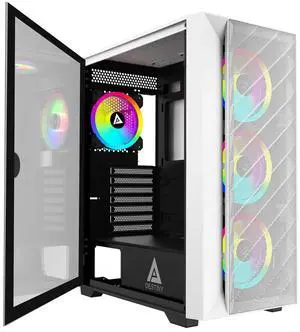 Apevia Destiny-MESH-WH Destiny Mesh Mid Tower Gaming PC Case w/ 4X 120mm ARGB Fans, 366 RGB Light Modes, 1x Metal Mesh Front Panel, 1x Door Swivel Style Magnetic Glass Side Panel, 2X USB3.0, White