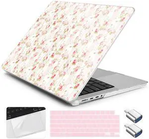Yebiseven for MacBook Pro 14 Inch Case M5 M4 M3 M2 M1 2025 2024-2021 Model A3434/A3112/A3401/A3185/A2918/A2992/A2779/A2442,Hard Shell with Keyboard Cover+Trackpad Film+OTG Adapter, Wildflower