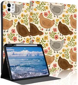 Idocolors Kawaii Farm Chicken Case for 10.2" iPad 2019/2020/2021(7th/8th/9th Gen) with Pencil Holder, Auto Wake/Sleep Leather Soft TPU Back Cover for Women Girls