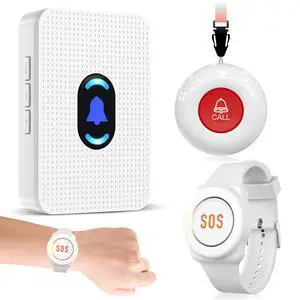 Daytech Wireless Wrist Pager Caregiver Call Button in Home System Watch Alarm Nurse Personal Help Alert for Patients Elderly 1 Watch Call Button 2 plugin Receiver