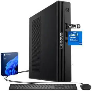 Lenovo V100q Business Tiny Desktop, Intel N-Series N100, 16GB DDR5 RAM, 256GB SSD, Wi-Fi 6, Wired Keyboard & Mouse, Windows 11 Pro, Black