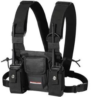 SAMCOM Radio Chest Harness with Adjustable Shoulder Holster, Tactical Vest Radio Vest Holder Two Way Radio Vest Rig, Walkie Talkie Storage Bag with Pack Pouch (1 Pack, Black)