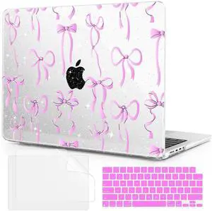 ICEKEE for MacBook Pro 16 inch M5 2026 2025-2021 Release M5 M4 M3 M2 M1 Pro/Max, A3429 A3428 A3402 A3186 A2991, Plastic Hard Shell Case & Keyboard Cover & Screen Protector, Rose Bow-Glitter