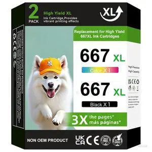 667 XL Ink Cartridges Black and Color Compatible for HP 667 Ink Cartridge for HP Ink 667XL Black and Color with DeskJet 1275 2374 2375 2376 2775 2776 6075 6475 6476 Printer (1Black, 1Color) 2-Pack