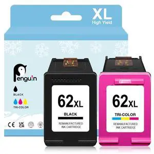 Penguin for HP 62XL Ink Cartridges Combo Pack for Envy 5540 5542 5660 5640 7640 7645 Officejet 5746 5741 6301 200c 250 258 Printers High Yield 62 XL hp62 hp62xl Black and Color
