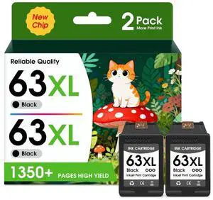 63XL Black Ink Cartridges Combo Pack High Yield Replacement for HP 63 Black Ink Cartridges Compatible for HP DeskJet 3630 3632 OfficeJet 3830 4650 4652 4655 5200 5212 Envy 4510 4520 Printer (2Pack)