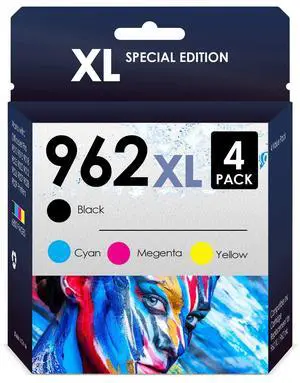 HP 962 XL Ink Cartridges Works with HP OfficeJet Pro 9010 9012 9014 9015 9016 9019 9020 9022 9025 9026 9028 Printers, 4 Pack 962xl (Black, Magenta, Cyan & Yellow)