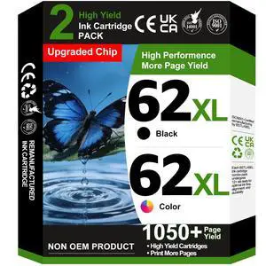 62XL Ink Cartridges Replacement for HP Ink 62 62XL HP62 Black Color Cartridge Combo Pack Work for HP Envy 5540 5545 5549 5640 5642 5660 5664 5665 7640 7645 8000 200 250 5740 5742 5745 8040 Printer