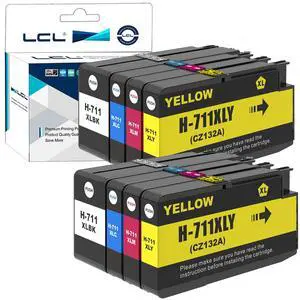 LCL 711XL Ink Cartridge High Yield Replacement for HP 711 711XL Ink for HP Designjet T120 24 T120 610 T520 24 T520 36 T520 610 T520 914 T125 24 Printers (2BK, 2C, 2M, 2Y, 8 Pack)