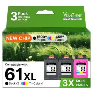 61XL Ink Cartridges 3-Pack Replacement for HP Ink 61 XL (2 Black 1 Tri Color) 61XL Ink Cartridges for HP Printers Envy 4500 4502 5530 Officejet 4630 2620 4635 Deskjet 2540 2512 2514 3510 3050