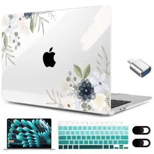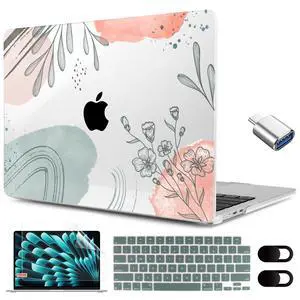 MEEgoodo for M4/M3/M2 MacBook Air 15.3 inch Case 2025 2024 2023, Case Fit Model (A3241/A3114/A2941) for MacBook Air 15 inch, Laptop Hard Shell with Keyboard Cover, Art Plants Floral