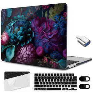 MEEgoodo Case for MacBook Air 15 inch M4/M3/M2 2025 2024 2023, Case Fit Model (A3241/A3114/A2941) for MacBook Air 15-inch, Laptop with Keyboard & Camera Cover & OTG Adapter, Beautiful Fantasy Flower