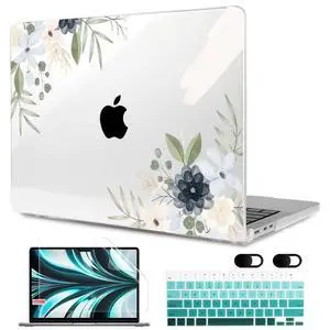 MEEgoodo Case for MacBook Air M4/M3/M2 13.6 inch 2025 2024 2022, Fit Model A3240 A3113 A2681, Compatible with MacBook Air 13 inch, Laptop Hard Shell Case with Keyboard Cover, Engraving Floral