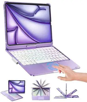 BABG TouchPad Keyboard Case for iPad Air 11(M3,M2)/iPad Pro 11 inch Keyboard(1st/2nd/3rd/4th Gen)&iPad Air 5th/Air 4th Keyboard, 360Swivel,7 Use Modes,Rainbow Backlight-Metallic Purple