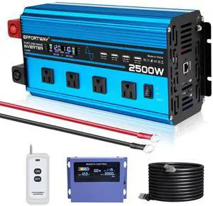 2500w Pure sine Wave Inverter DC 12V to AC 110V/120V Converter, 5000w (Peak) with LCD Display, Wireless/Wired Remote Control, 4AC outlets and 4USB.Ideal for Camping, RV Travel, Off-Grid Solar Systems