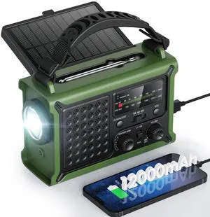 Raynic NOAA Weather Radio 12000mAh, Emergency Weather Radio with 2X Faster Solar & Hand Crank Charging, 5W Flashlight, Reading Lamp, Cell Phone Charger, SOS for Hurricane, Storm, Camping