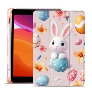 MAYCARI Easter Bunny Eggs Fashion Case for iPad 10.9 inch 2022 with Pencil Holder, Original Pattern iPad 10th Generation Soft TPU Back Protective Cover Shell, Auto Sleep/Wake Slim Shell - Pink