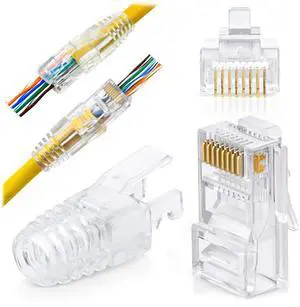 GTZ RJ45 Cat6 Pass Through Connectors and Strain Relief Boots - Pack of 100/100 - EZ to Crimp Modular Plug for Solid or Stranded UTP Network Cable
