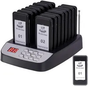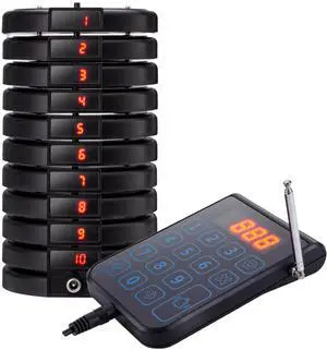 YYCALLING Pager System,Wireless Calling System 10 pagers,Social Distancing Buzzer Touch Keyboard,with Vibration, Flashing and Buzzer for Food Truck, Restaurant, Food Court